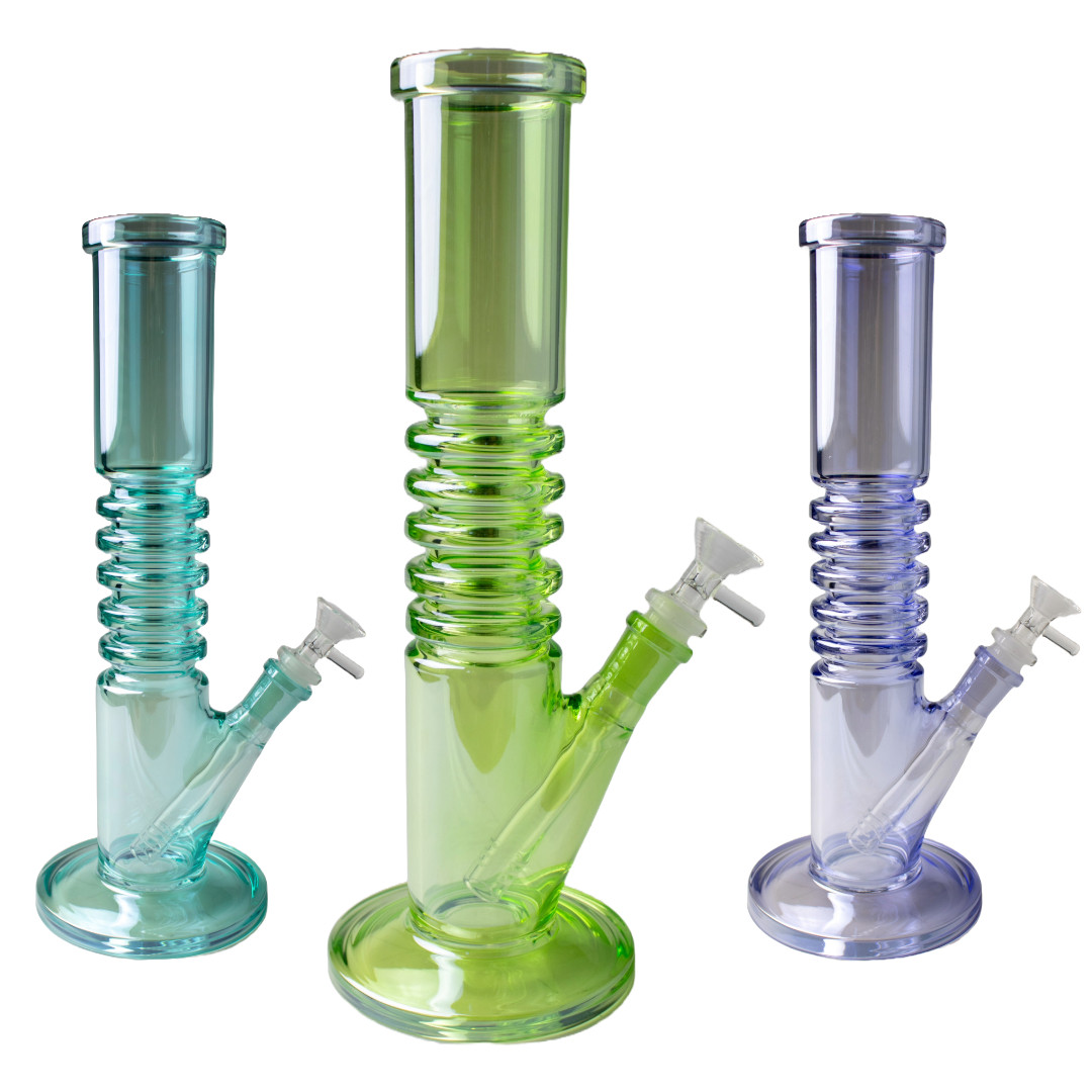 <p>5mm - 12” Pastel Ribbed Straight Tube.</p> <ul> <li>Straight Tube Disc Base.<br />• Ice Catcher / Hand Grip.<br />• 45 Degree 14mm Female Joint.<br />• Pastel / Iridescent <br />• Glass-on-Glass Diffused Downstem.<br />• Comes with 14mm Male Flower Bowl<br /><br /></li> </ul>