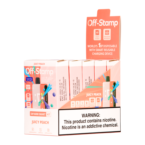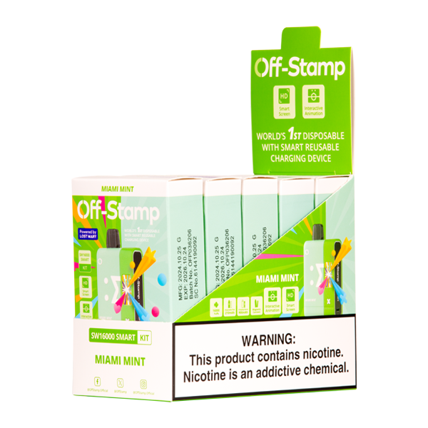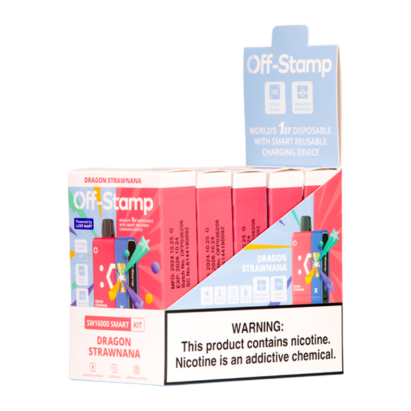 <h3 style="padding-left: 280px;"><span><strong>OFF STAMP SW16000 KIT</strong></span></h3> <p><span><strong>Off Stamp SW16000 kit includes the pre-filled Off Stamp Disposable Vape device and the 900mAh charging dock battery, which can be affixed to power and charge the Off Stamp SW16000 and SW9000 disposable vape pod kits.</strong></span></p> <p>Each kit includes the pre-filled Off Stamp Disposable Vape device and the 900mAh charging dock battery, which can be affixed to power and charge the Off Stamp SW16000 and SW9000 disposable vape pod kits.</p> <p>The disposable vape half contains a 210mAh battery, which requires the dock to recharge and can tide you over while it is quickly brought back with type-C USB charging.</p> <p>With flavors and tech powered by Lost Mary, the charging dock battery contains the bulk of the electronics and is reusable, making the Off Stamp SW16000 and SW9000 an eco-friendlier approach to disposable vaping. The disposable vape component holds 17ml of e-liquid and generates an estimated 16,000 puffs.</p> <ul> <li><strong>E-liquid contents</strong>: 17ml</li> <li><strong>Nicotine Level</strong>: 50mg</li> <li><strong>Puffs per Device</strong>: 16,000+</li> <li><strong>Disposable Vape Battery</strong>: 210mAh (Rechargeable via Off Stamp Battery Pack Only)</li> <li><strong>Use:<span> </span></strong>View battery life with two clicks and animations with single click. </li> <li><strong>Battery Pack/Charging Dock:</strong><span> </span>900 mAh Smart Battery (included in all Off Stamp kits and compatible with Off Stamp SW9000 and Off Stamp SW16000 series disposable vape pods).</li> <li><strong>Mesh Coil</strong></li> <li><strong>POWERED BY LOST MARY</strong></li> </ul>