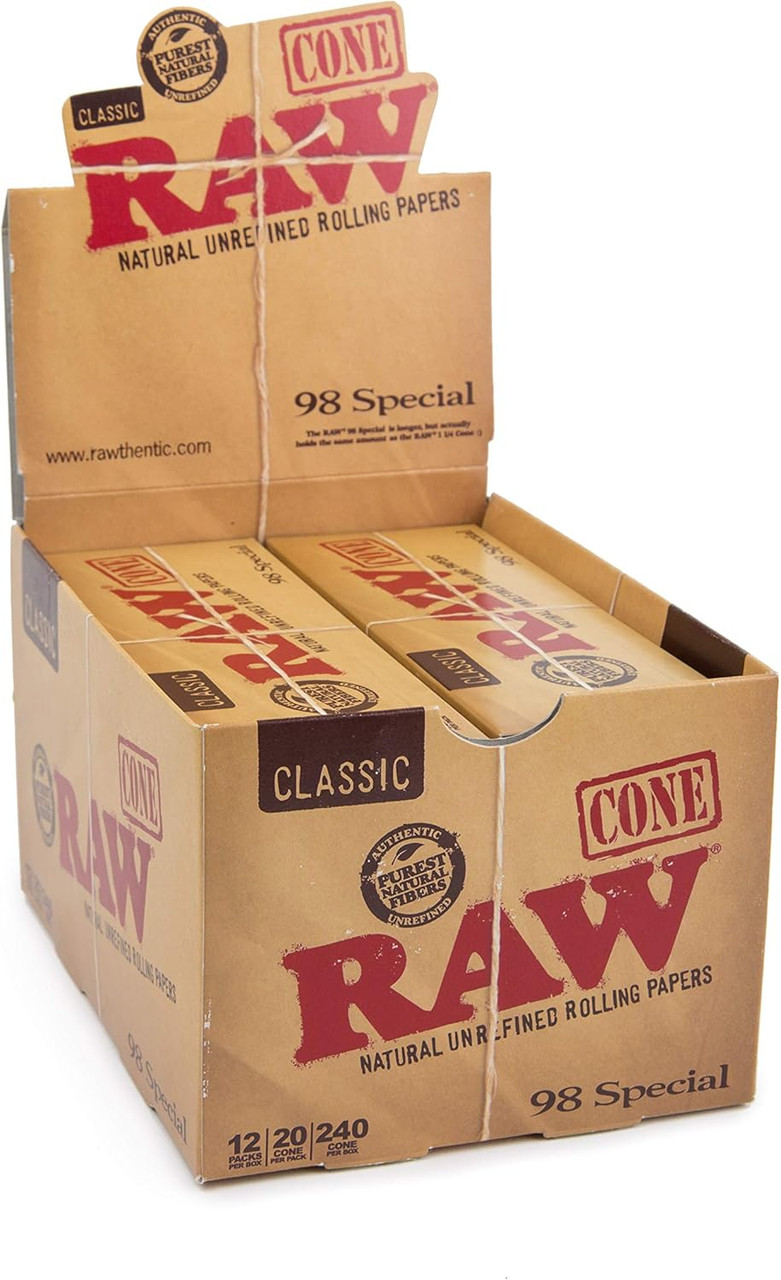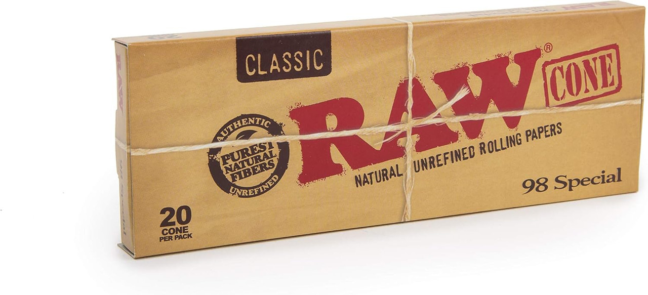 <p><span>RAW Classic Pre-rolled Cone.</span><br /><span>• Single Size 70/24 (70mm Cone w/ 24mm Tip)</span><br /><span>• Includes Foldable Funnel</span><br /><span>• CONES PER UNIT: 20</span><br /><span>• UNITS PER DISPLAY: 12</span><br /><span>• DISPLAYS PER CASE: 8</span></p>